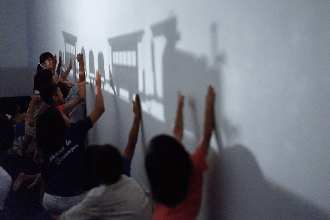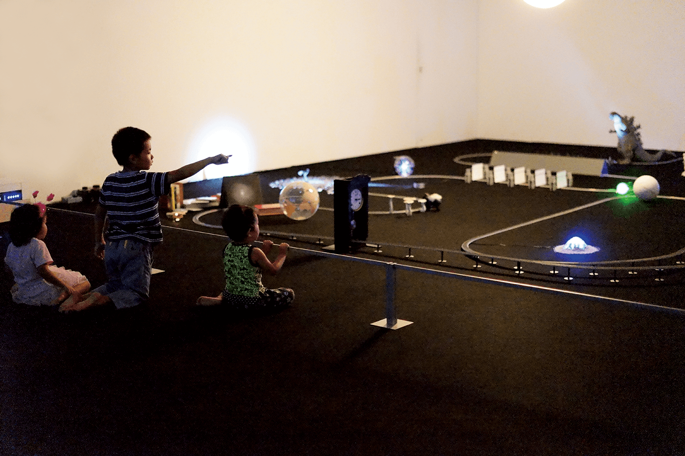 会場入口のエントランスに設置されたこの作品は、入場待ちする子どもたちにむけた格好のイントロダクションとなった。