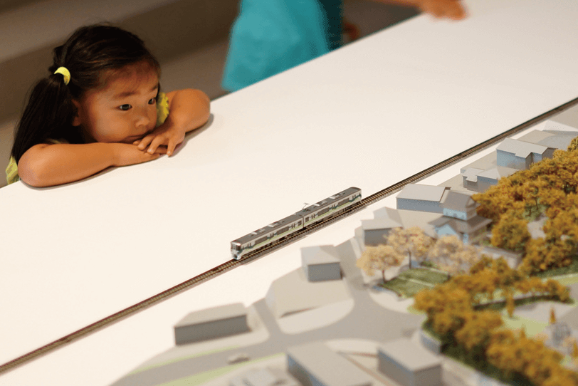 美術館の東側を、館に沿って走る「愛知環状鉄道」。作家はこの鉄道を建築模型の中に走らせてみたいと考えた。