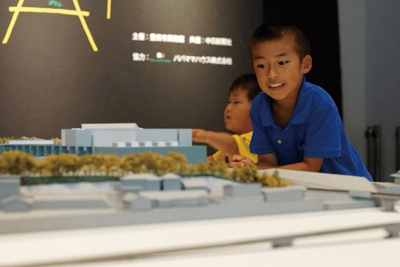 豊田市美術館のエントランスの一角には、1/400スケールの建築模型がひっそりと展示されている。それは普段、アクリルケースに護られ、開館当初からずっと同じ場所に置かれている。小島はこの建築模型に目をつけた。