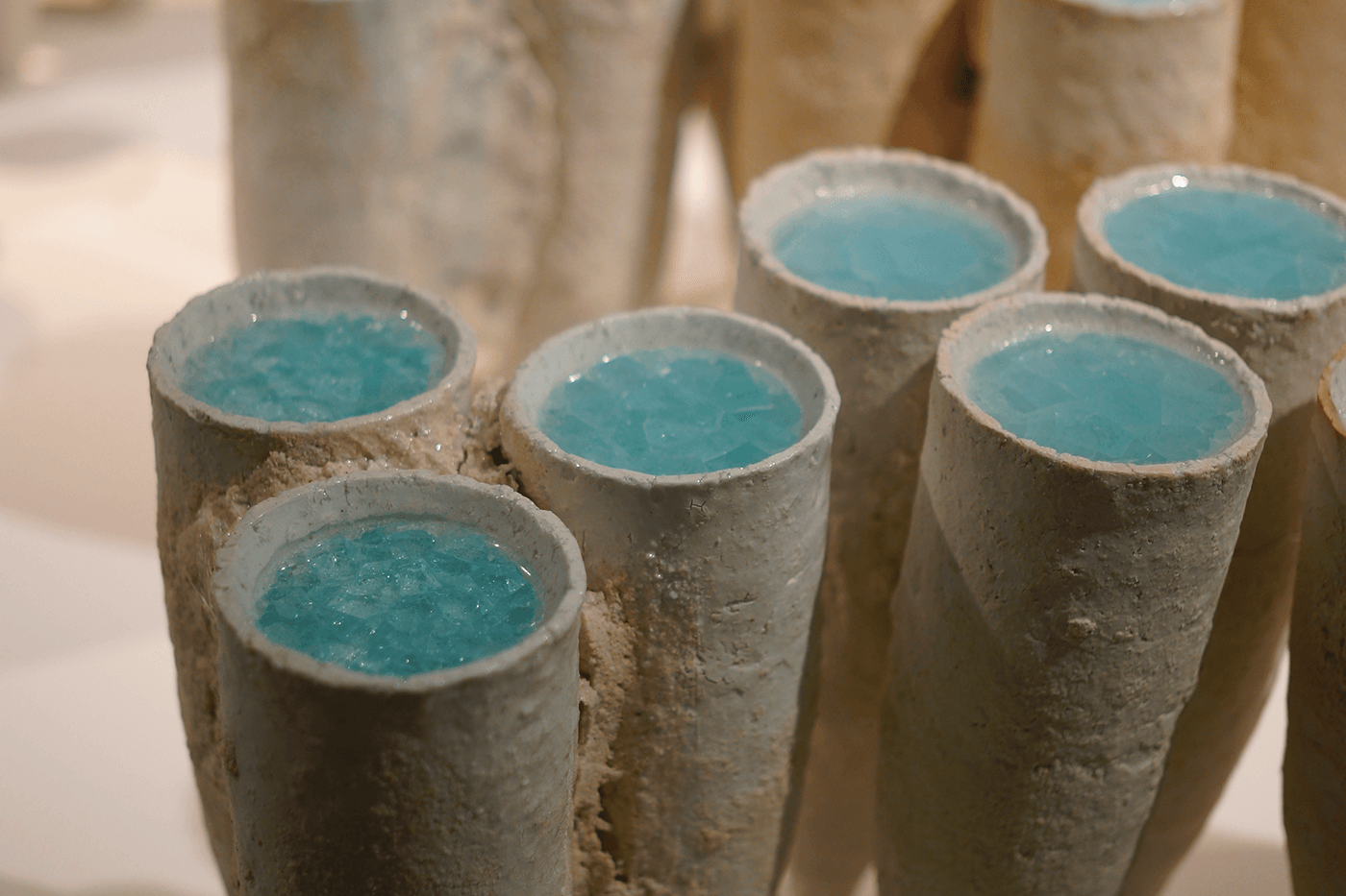 《Breath of Craze》は、その音と、水をたたえたように釉が満たされた、小川待子の作品《K-2000》とを取り合わせたインスタレーションである。通常、やきものの制作に携わる者しか聴くことのできない釉の音色を通じ、陶芸の新たな一面を提示するものである。